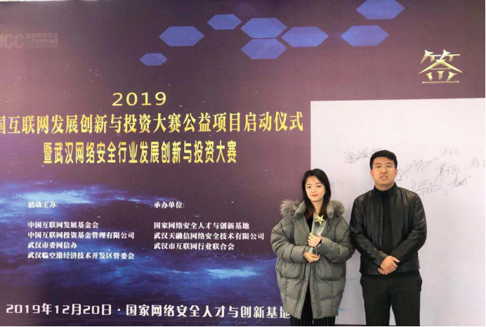 2019年12月20日上午9:00由中国互联网发展基金会、中国互联网投资基金管理有限公司、武汉市委网信办、武汉临空港经济技术开发区管委会共同主办的“首届中国互联网发展创新与投资大赛”启动仪式暨武汉网络安全行业发展创新与投资大赛于在武汉东西湖区国家网络安全人才与创新基地展示中心举办。经过层层评选,共选出10家获奖企业。由KY官网代棋帆博士为负责人的此方智能环境设计工程有限公司荣获优秀奖。来自中国互联网和网络安全行业的领导、专家为企业颁奖并合影留念。