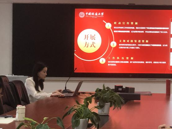 各学生党支部、党建办部门负责人依次进行ppt汇报部门2024年立项方案。在答辩环节中,各党支部分别围绕“传播荆楚文化,点亮城市地图”“红色建筑忆党史,实践党课筑党性”“探索“艺术+”党建工作模式”“红音嘹亮,艺同璀璨”等主题,从支部规范化、制度化建设入手,坚持理论联系实际,深挖理论知识内涵,创新活动形式等维度,对立项基础背景、工作思路、特色活动与实施计划等进行详细阐述。