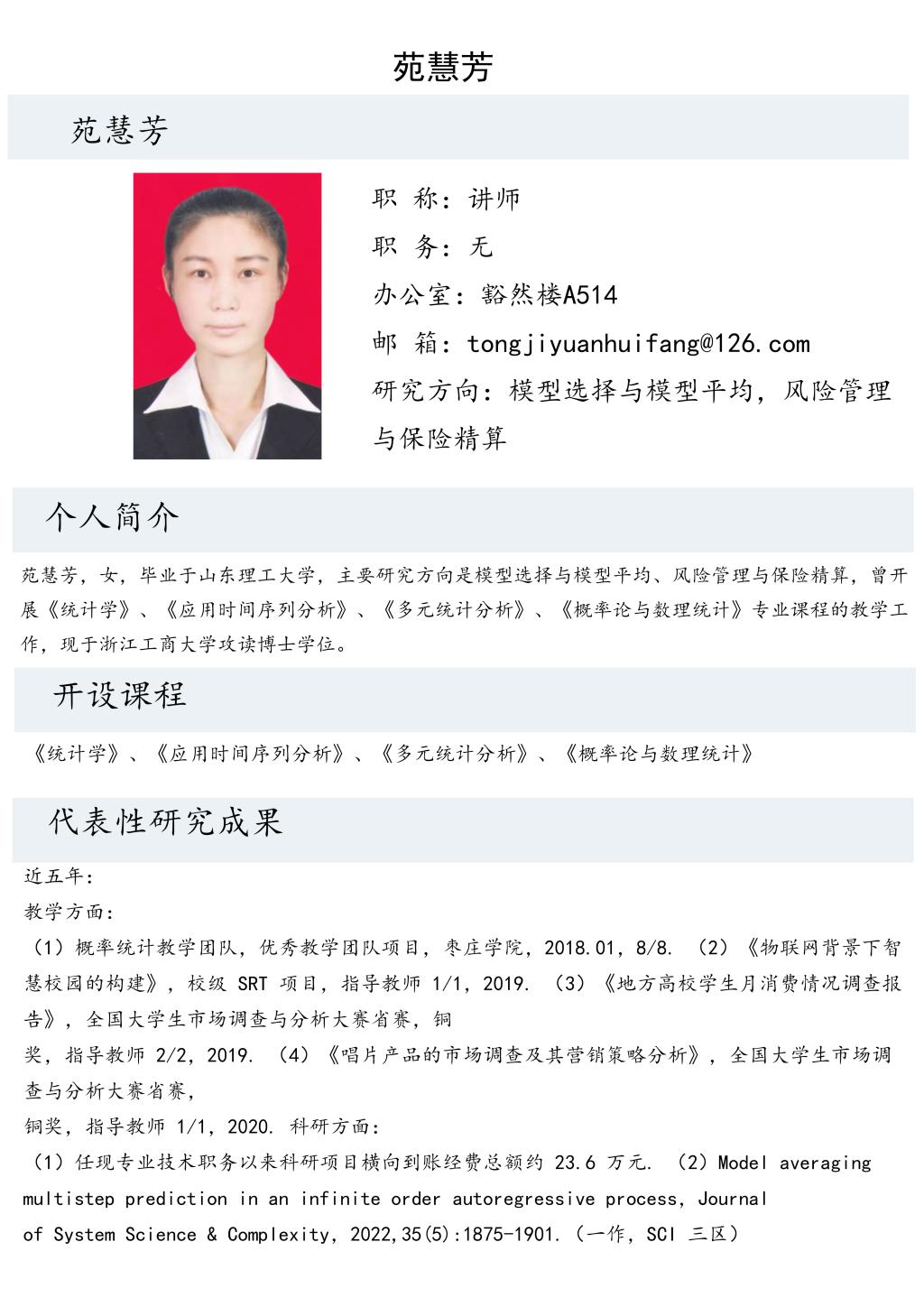 苑慧芳老师个人简介