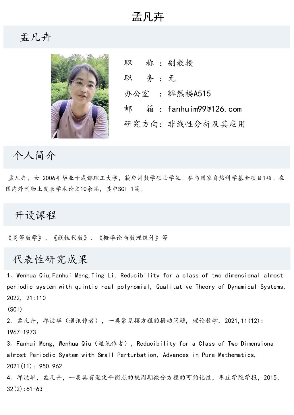 孟凡卉老师个人简介