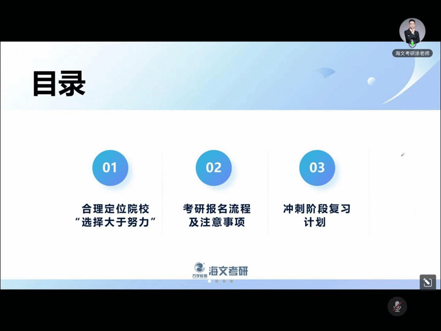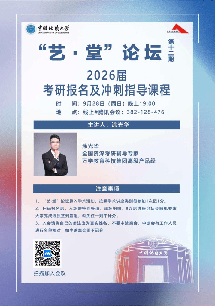 为帮助同学们精准把握最新考情、科学规划复习节奏、破解备考路上的困惑,9月28日晚上19:00,KY开元集团官网于线上举办了第十二期 “艺・堂” 论坛2026届考研报名及冲刺指导课程。本次分享会邀请了全国资深考研专家、万家教育科技集团高级产品经理涂光华老师担任主讲人,旨在为同学们提供一场内容详实、指导性强的考研全程规划分享。本次活动由兼职辅导员黄灿主持。