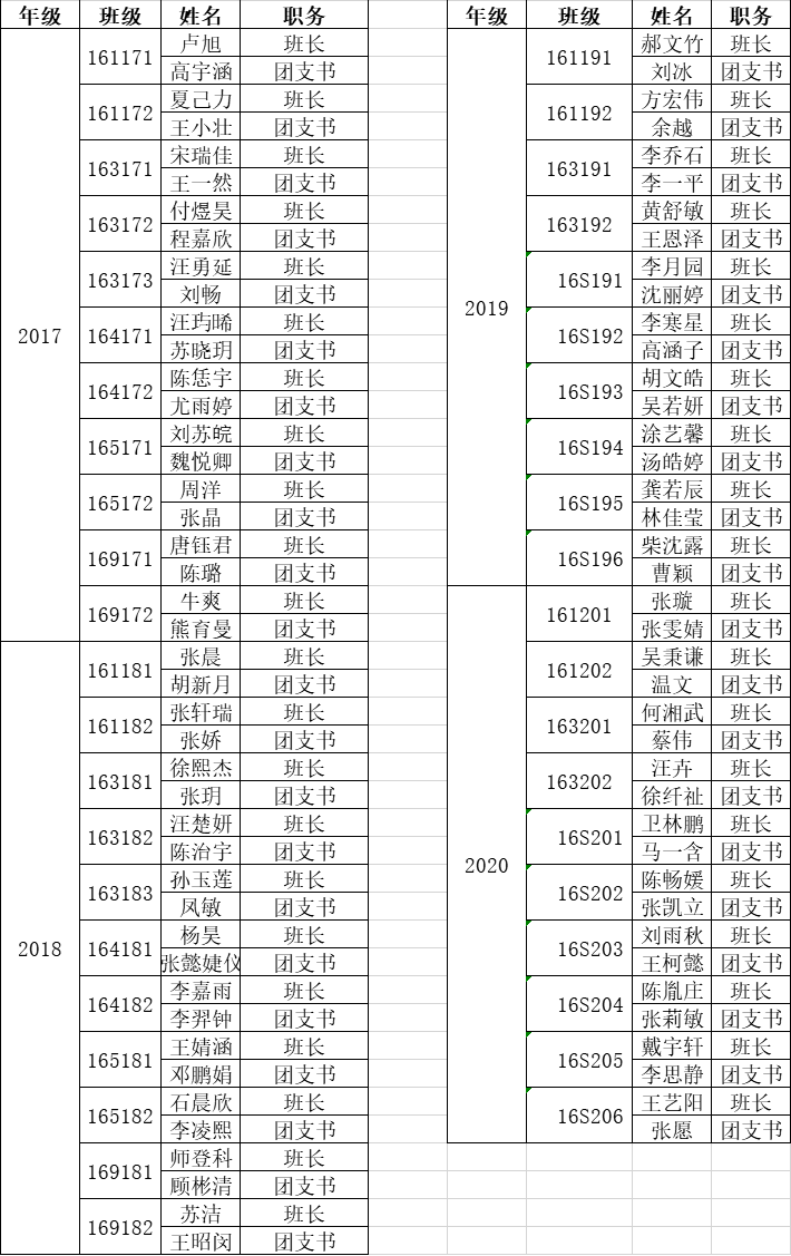 KY开元集团官网2020-2021年度本科生班长团支书名单公示