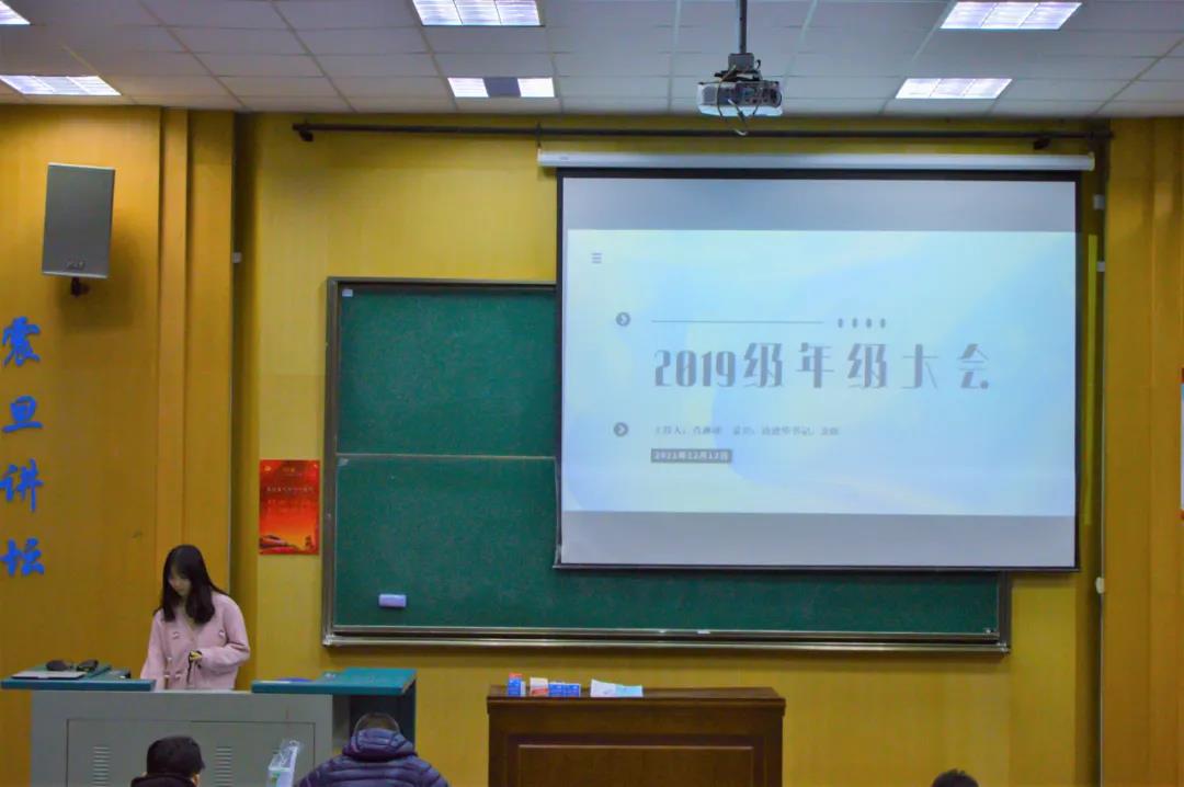 2021年12月23日晚上七点,KY开元集团官网2019级年级大会于教三楼111准时召开,会议由2019级本科生兼职辅导员肖淋译主持,KY开元集团官网党委副书记边建华、研究生会主席余跃及2019级全体学生参加。