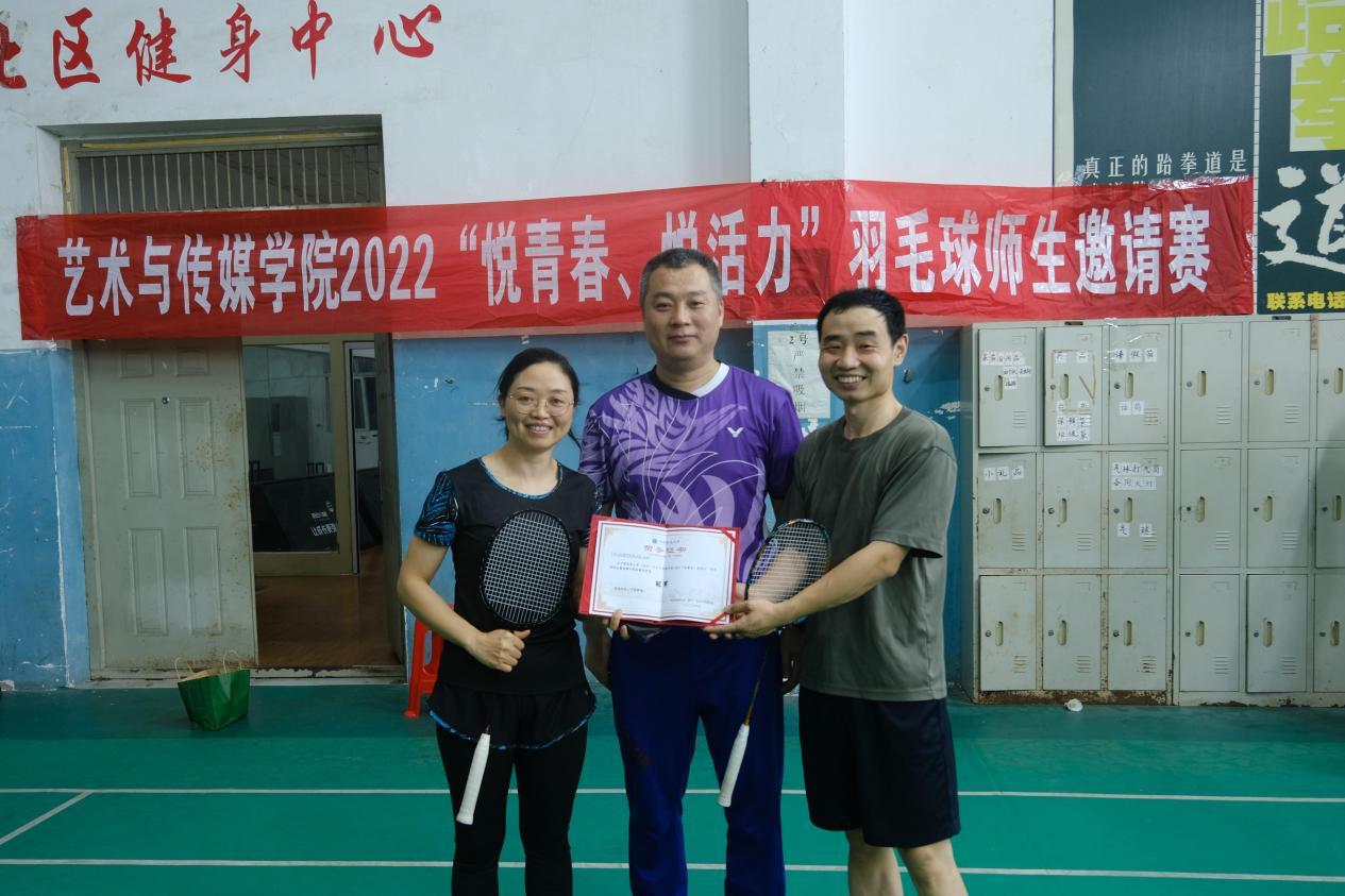 比赛结束后举行了本次师生邀请赛的闭幕式,首先由学院党委副书记边建华致辞,边书记指出:“本次羽毛球师生邀请赛活动效果极佳、成果显著,赛出了了我们艺媒人的风采,希望活动越办越好,也希望学院师生多多参与。”致辞后,边书记为获奖队伍颁发了荣誉证书,并和获奖选手合影留念。