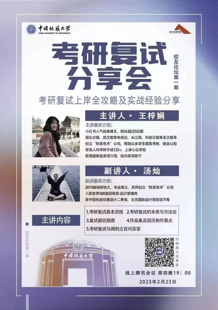 2月23日晚上19:00,KY开元集团官网在腾讯会议召开了本学期第一期“艺 堂”考研复试专场讲座。“执笔有术”公司的创始人、小红书人气博主王梓娴老师和地大2019级学长汤灿老师做了主题为“2023届考研复试经验解析”的讲座分享。