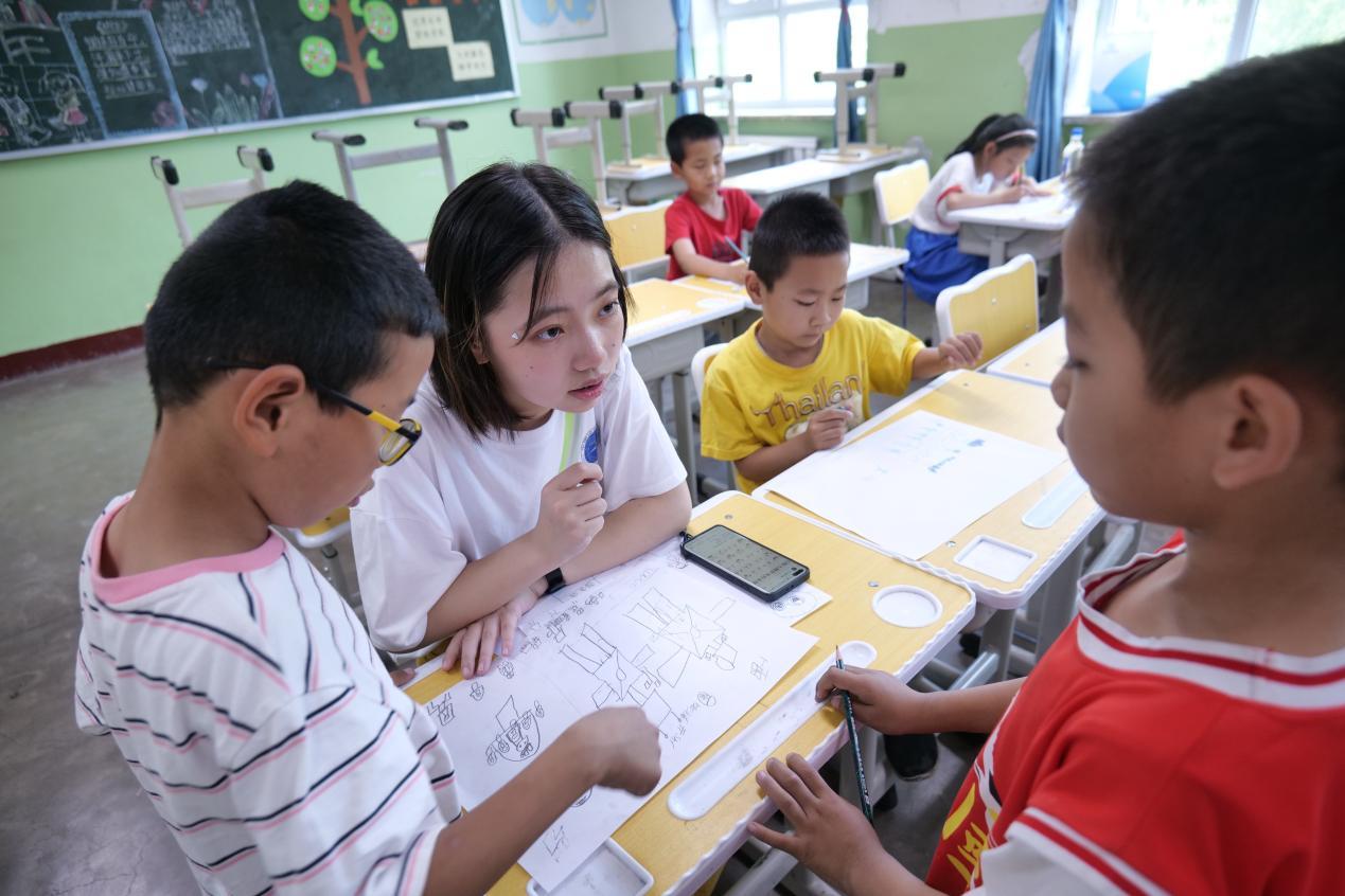 开营仪式结束后,支教团成员对前来报名的孩子们进行了分班,志愿者们在各自的教室里通过活泼生动的自我介绍,一个个化身为可爱的“小鹿老师、小鱼老师”同孩子们一起画画折纸、做游戏、唱歌等进行了初次见面的“破冰”,增进了双方的友谊与情感,拉近了彼此的心。