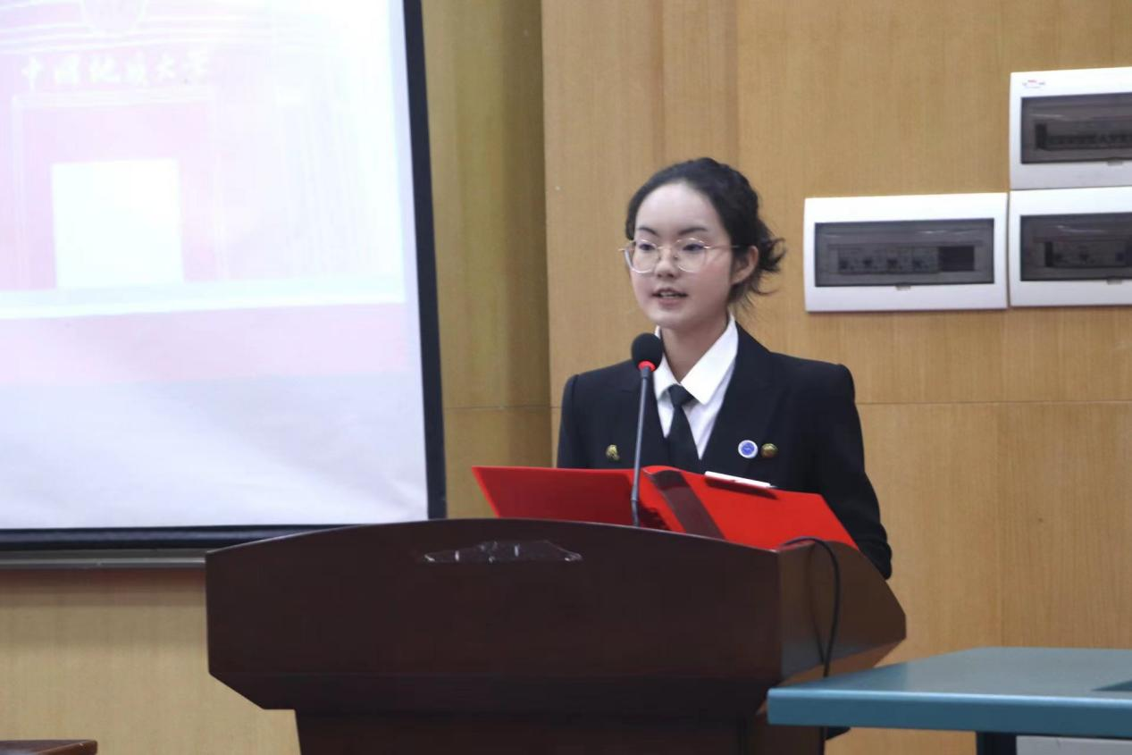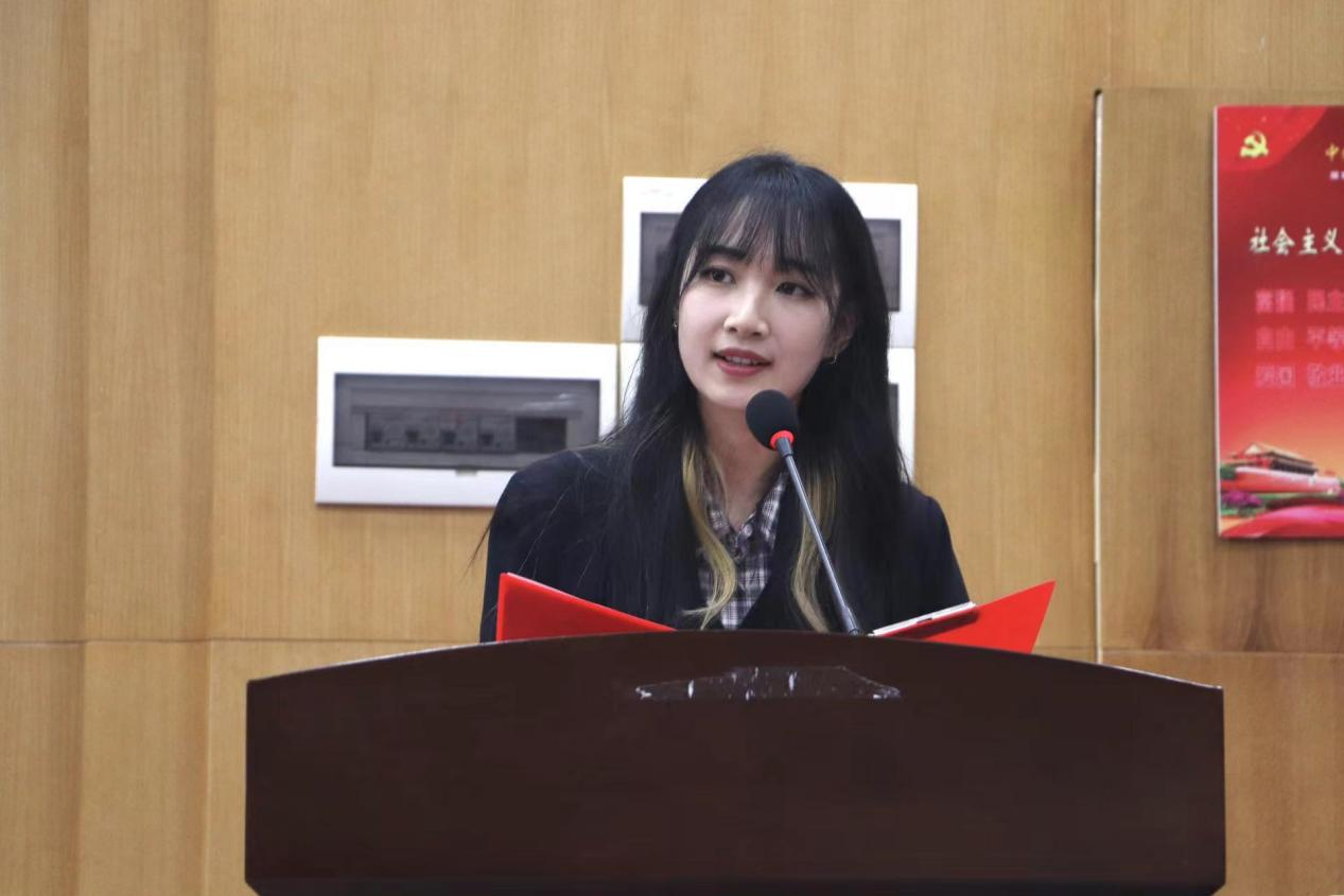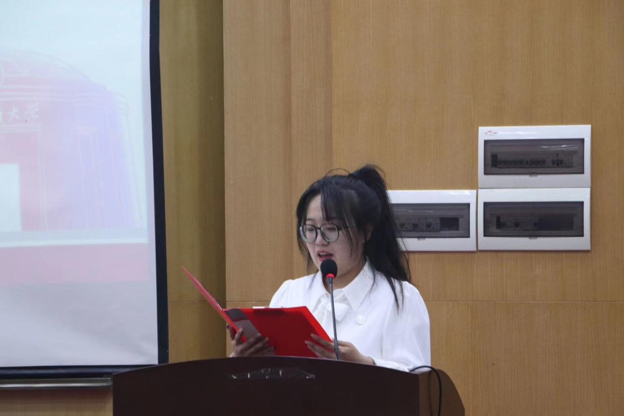 典礼第四项,由2023级研究生新生代表赵依婷同学发言。她从艰苦朴素,求真务实;心怀梦想,砥砺前行;踏实求真,自觉肩负时代使命这三个方面号召同学们一起用奋斗的姿态献礼祖国。