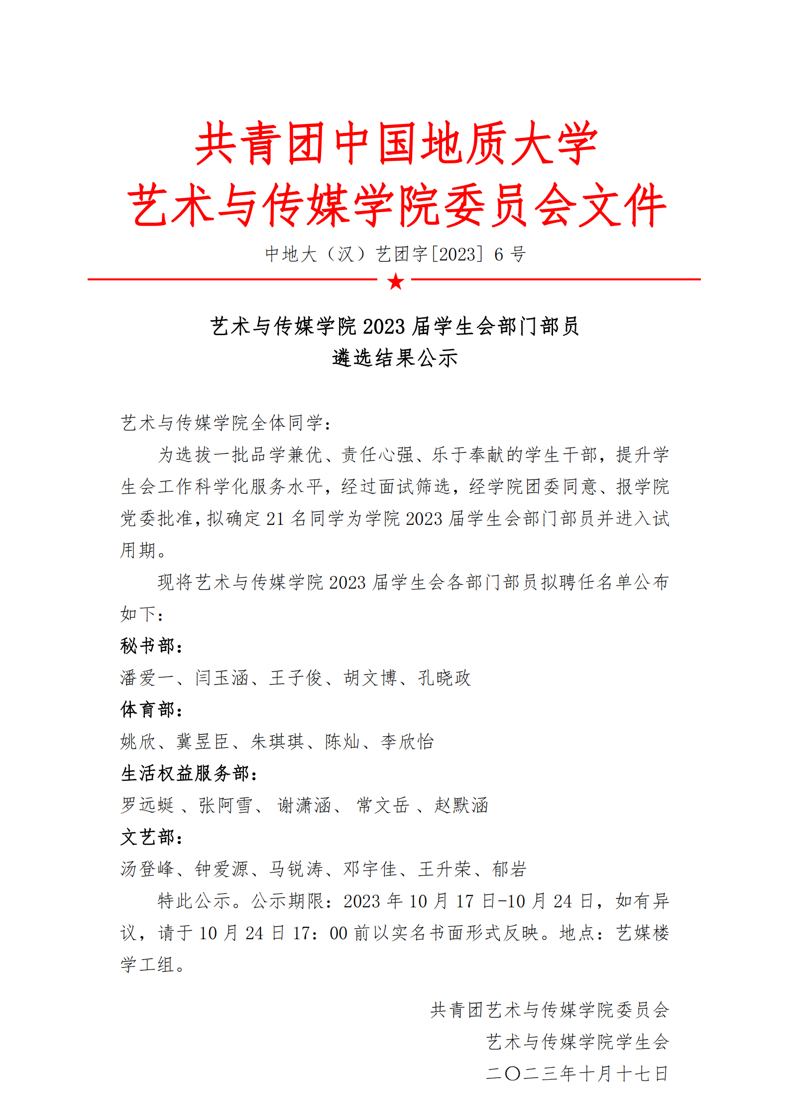 通知 | KY开元集团官网2023届学生会部门部员遴选结果公示