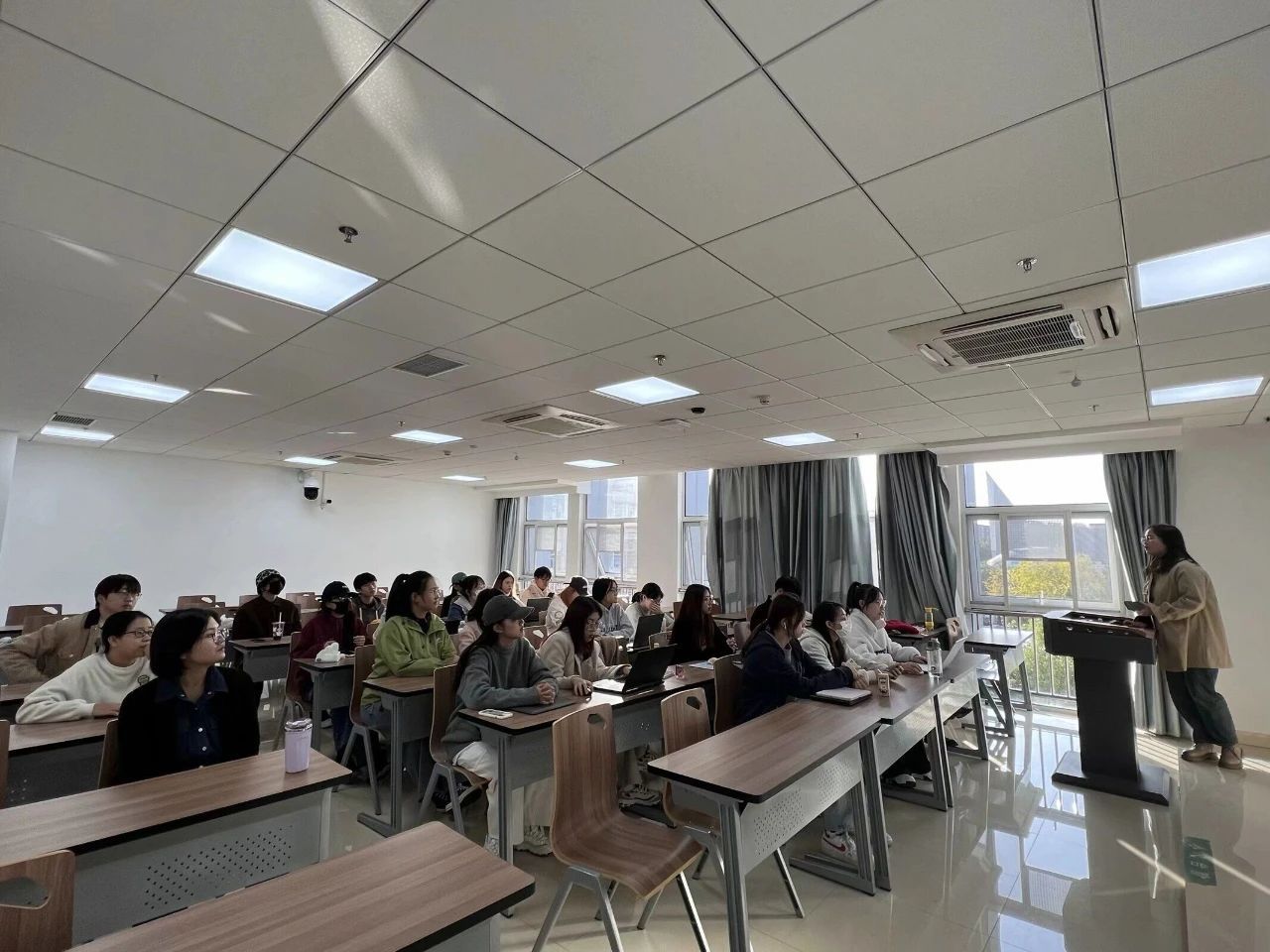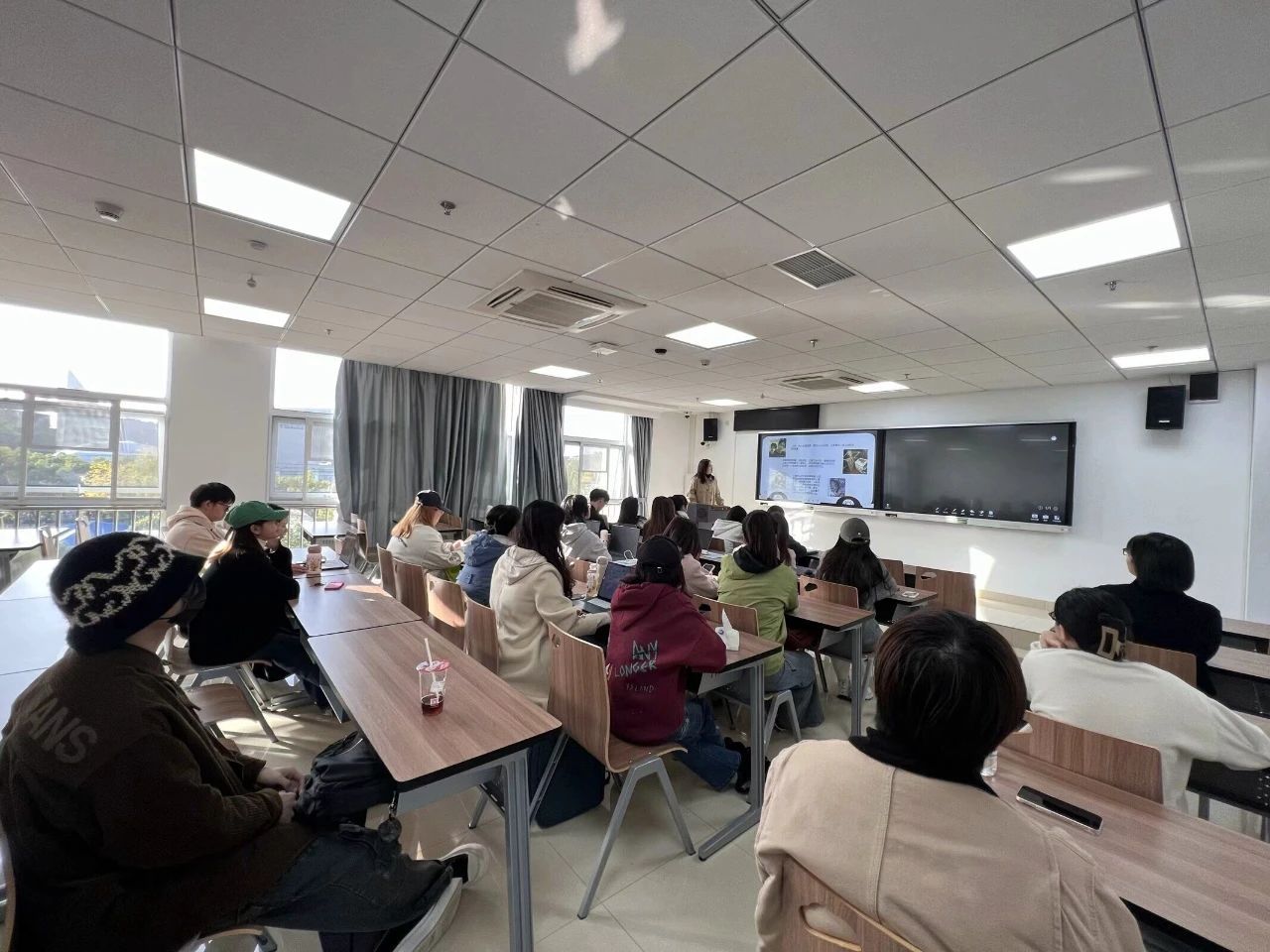 在良好学风建设方面,良好的学风建设是一股强大的力量,能够对学生起到促进和引导作用。从刚进校开始,班主任就带领我们开展读书分享会,培养同学们阅读学习的习惯,鼓励大家在学习专业知识的同时去不断拓宽视野、丰富知识面,从文学中汲取养分。在专业课上,同学们也经常互相交流学习,在课后,志同道合的同学也会抽时间约在一起进行专业探讨,同时在课堂上也总能看到我班同学积极发言,与老师进行互动。