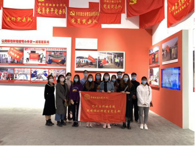 图七:中国地质大学(武汉)环境设计研究生党支部展览入口处合影