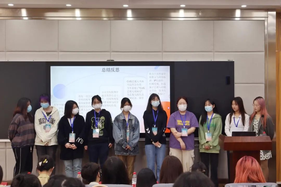 第四个答辩部门为全媒体中心,答辩人员首先展示了全媒体中心的部门建设,部门成员工作机制与主要工作内容,全媒体中心在过去的一年里准确跟进学院的各项活动,第一时间推送消息通知,展示艺媒风采。所管理的公众号和视频号“CUG艺媒人”均获得较高的浏览量。最后对过去一年的不足做出总结并提出了未来的努力方向。针对主席团提出的“未能完善的官微IP形象”问题,全媒体中心的成员也作了具体的解释和展望。